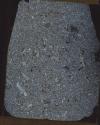 DescriptionLight grey volcanic rock with rust-colored weathering. Few plagioclase phenocrysts are visible (~1-2 mm) and even fewer dark minerals that may be amphibole (~4 mm).