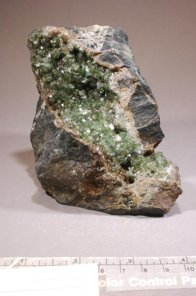 DescriptionSmall blocky green crystals on matrix